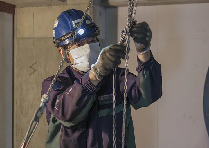 乗っているエレベーターが急降下したとしたら…そんな不安を抱えて利用している人はまずいないでしょう。それはエレベーターの事故やニュースを目にしたことがないから。私たちが手がけている仕事は、エレベーターやエスカレーターといった昇降機の安全を創ること。安心して利用していただき、その便利さを当たり前に感じてもらう。それが私たちがこの仕事を続けている一番の理由です。
